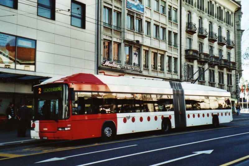 TPF Fribourg Nr. 513/FR 300'391 MAN/Hess Gelenkduobus am 25. April 2009 Fribourg, Bahnhof