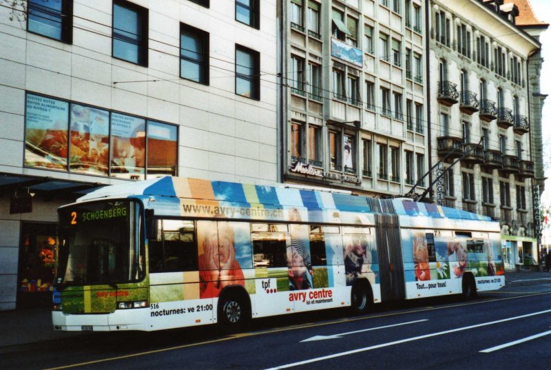 TPF Fribourg Nr. 516/FR. 300'396 MAN/Hess Gelenkduobus am 25. April 2009 Fribourg, Bahnhof (mit Vollwerbung für das "avri centre")