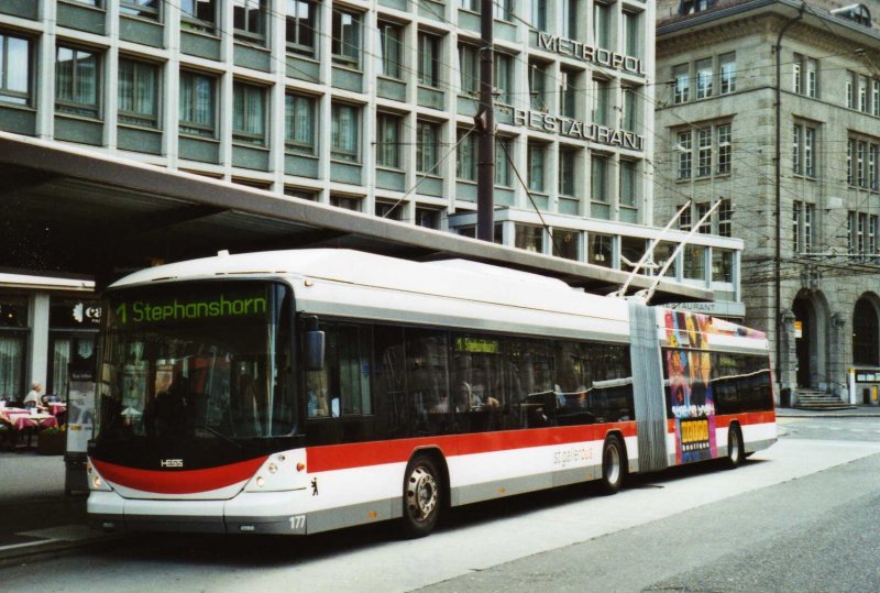 VBSG St. Gallen Nr. 177 Hess/Hess Gelenktrolleybus am 22. April 2009 St. Gallen, Bahnhof