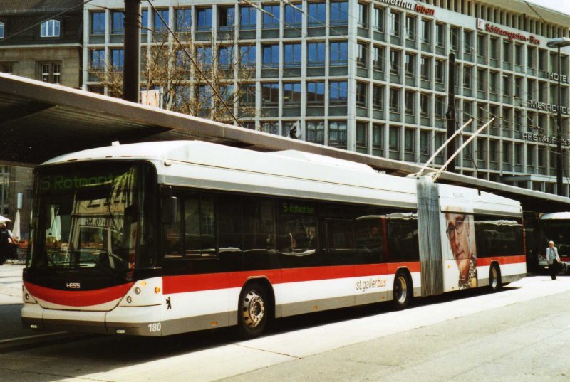VBSG St. Gallen Nr. 180 Hess/Hess Gelenktrolleybus am 22. April 2009 St. Gallen, Bahnhof