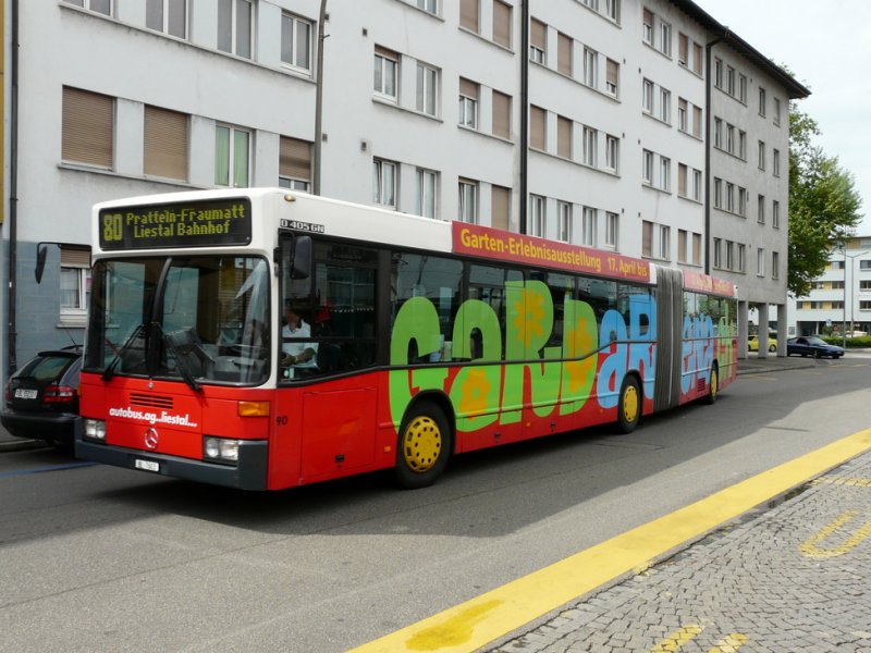 AAGL - Mercedes O 405 GN Nr.90 BL 7603 mit Werbung unterwegs auf der Linie 80 in Prattelen am 11.05.2009