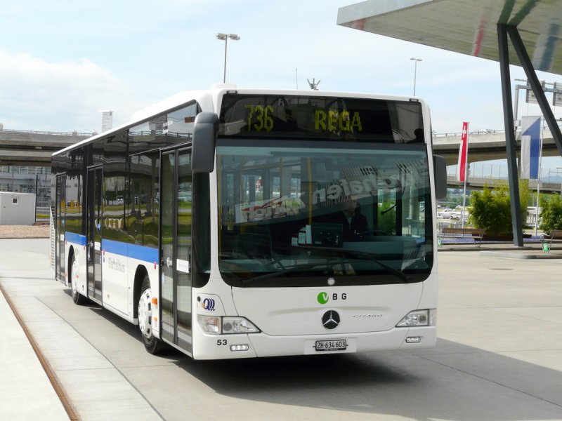VBG - Mercedes Citaro Nr.53 ZH 634603 unterwegs auf der Linie 736 bei den Haltestellen vor dem Flughafen Zürich am 06.05.2009