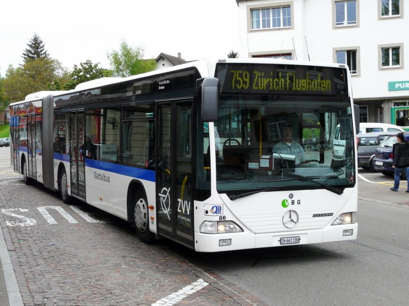 VBG - Mercedes Citaro Nr.86 ZH 661186 unterwegs auf der Linie 759 bei den Haltestellen vor dem Bahnhof Dübendorf am 06.05.2009