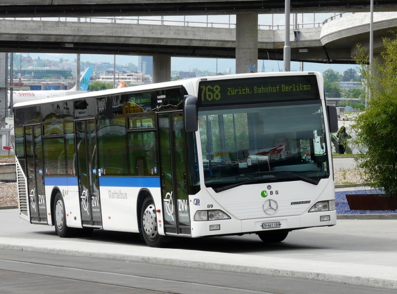 VBG - Mercedes Citaro Nr.89 ZH 661189 unterwegs auf der Linie 768 bei den Haltestellen vor dem Flughafen Zürich am 06.05.2009