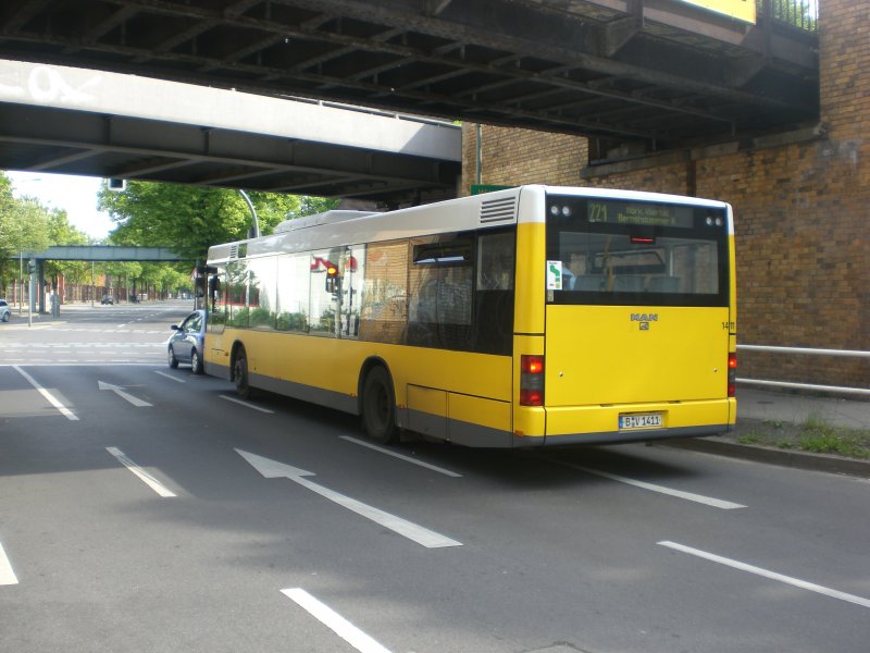 MAN Niederflurbus 2. Generation auf der Linie 221 nach Märkisches Viertel Bernhauser Ring am S-Bahnhof Eichborndamm.