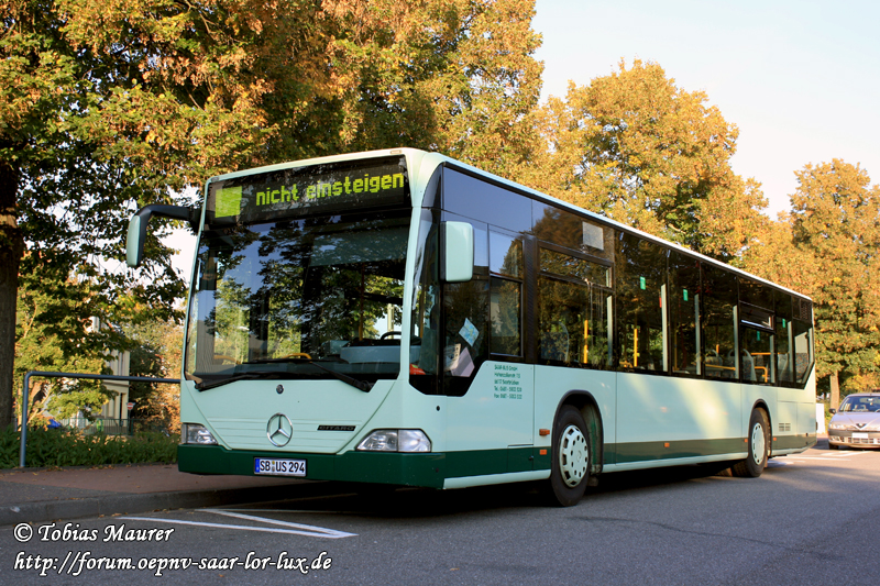 28.09.2008: Ein Citaro der Saarbus GmbH steht in der herbstlichen Lindenallee in Neunkirchen. Der SB-US 294 hatte am Vorabend wohl ein unschönes Erlebnis, darauf lassen zumindest die Eierreste und das gesplitterte Glas an der Seitenscheibe schließen.