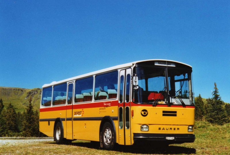 AVG Meiringen Nr. 74/BE 607'481 Saurer/R&J RH (ex P 24'357) am 23. August 2009 zwischen der Grossen Scheidegg und der Schwarzwaldalp
