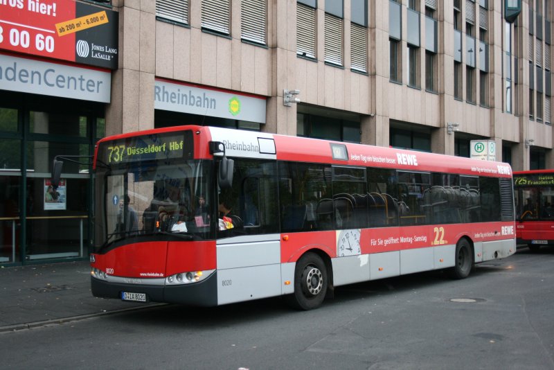 Rheinbahn 8020 hier mit Werbung für REWE aur der Linie 737 am HBF Düsseldorf.