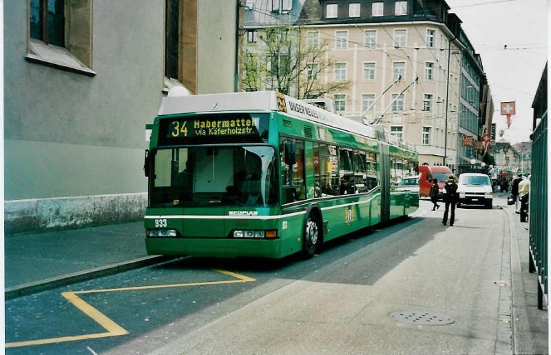 Aus dem Archiv: BVB Basel Nr. 933 Neoplan Gelenktrolleybus am 26. April 1999 Basel, Claraplatz