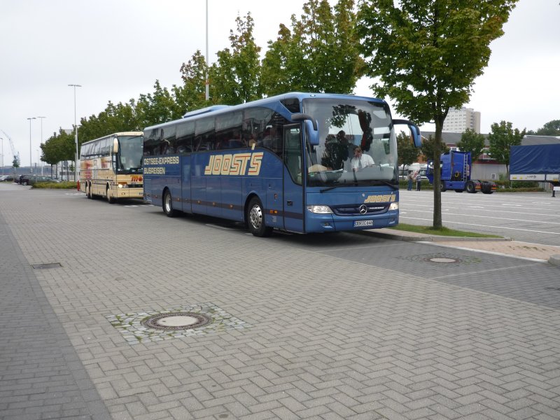ein neuer Mercedes-Bus Tourismo am Norwegenkai in Kiel, vor der Abfahrt nach Oslo/N.