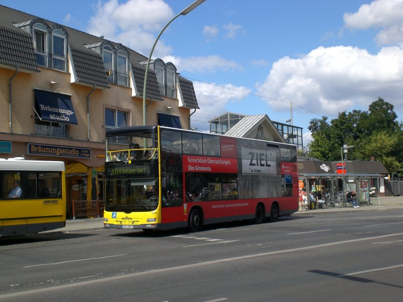 MAN Lion's City DD (Doppelstock) auf der Linie X11 nach U-Bahnhof Dahlem-Dorf am S-Bahnhof Lichterfelde Ost.