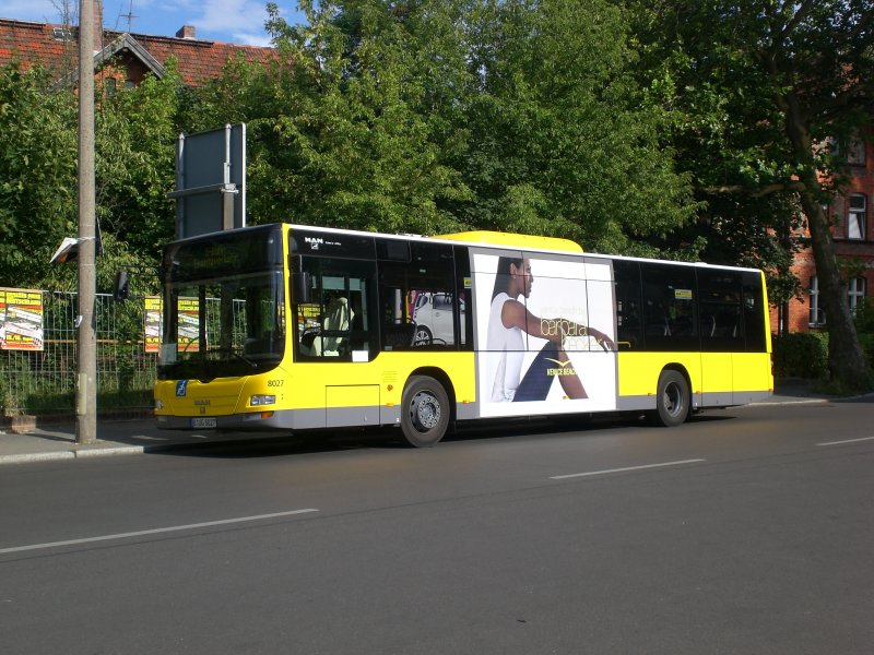 MAN Niederflurbus 2. Generation als SEV für die S-Bahnlinien 5,7,75 zwischen S-Bahnhof Rummelsburg und S+U Bahnhof Lichtenberg am S-Bahnhof Nöldnerplatz/Schlichtallee.