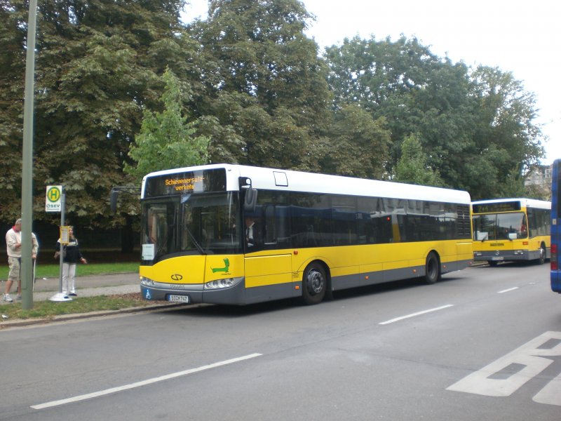 Solaris Urbino als SEV für die S-Bahnlinien 5,7,75 zwischen S-Bahnhof Rummelsburg und S+U Bahnhof Lichtenberg.