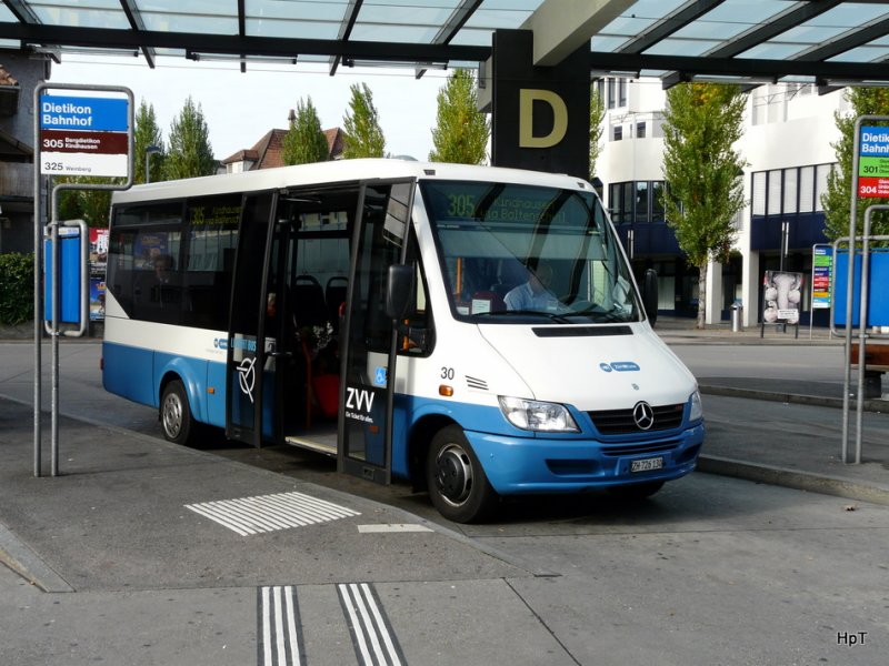 VBZ - Mercedes Sprinter Nr.30 ZH 726130 unterwegs auf der Linie 305 bei den Bushaltestellen vor dem Bahnhof Dietikon am 11.10.2009