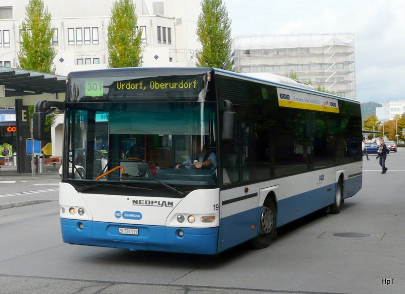 VBZ - Neoplan Nr.19 ZH 726119 unterwegs auf der Linie 301 bei den Bushaltestellen vor dem Bahnhof Dietikon am 11.10.2009