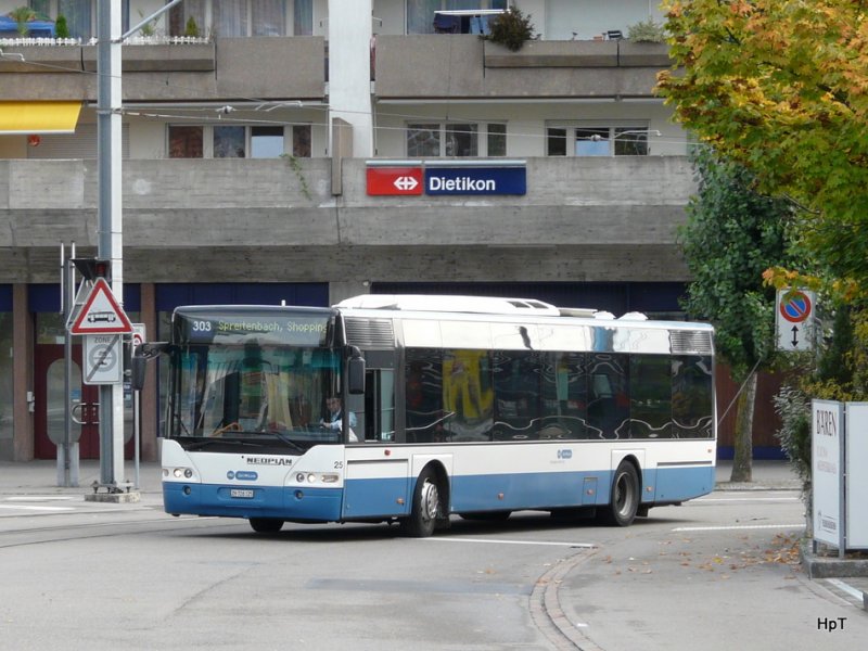 VBZ - Neoplan Nr.25 ZH 726125 unterwegs auf der Linie 303 vor dem Bahnhof Dietikon am 11.10.2009