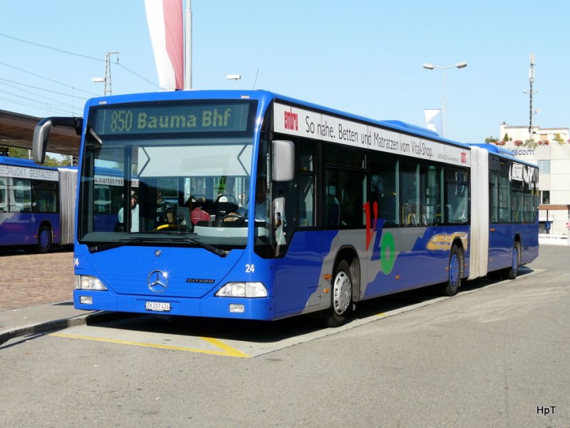 VZO - Mercedes Citaro Nr.24 ZH 207424 unterwegs auf der Linie 850 bei den Haltestellen neben dem Bahnhof von Wetzikon am 04.10.2009