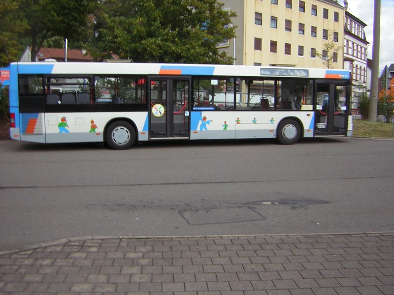 Auf dem Foto ist ein MAN-Bus zu sehen.Das Foto wurde auf dem Busbahnhof Brebach Fotografiert.