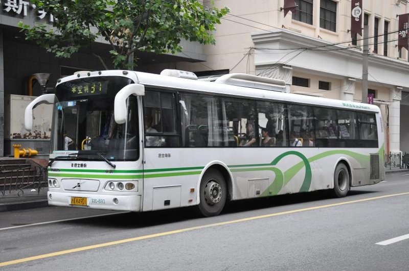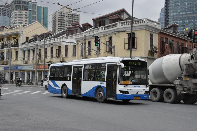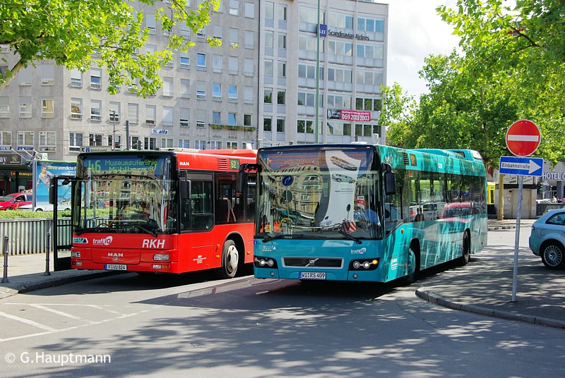 Treffen eines MAN- und Volvo-Busses am Frankfurter Hauptbahnhof.