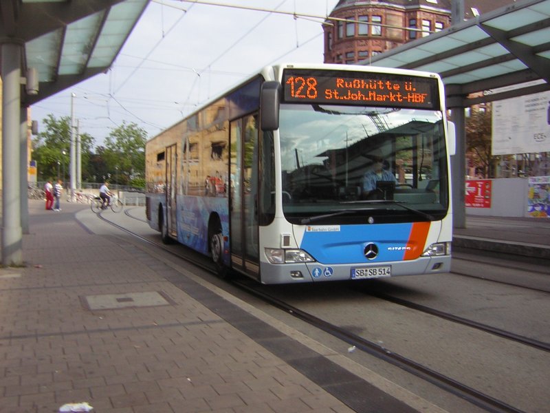 Das Foto zeigt einen Citaro am Saarbrücker-Hauptbahnhof. Die Aufnahme des Fotos war am 19.09.2009.Der Bus fuhr die Linie 128