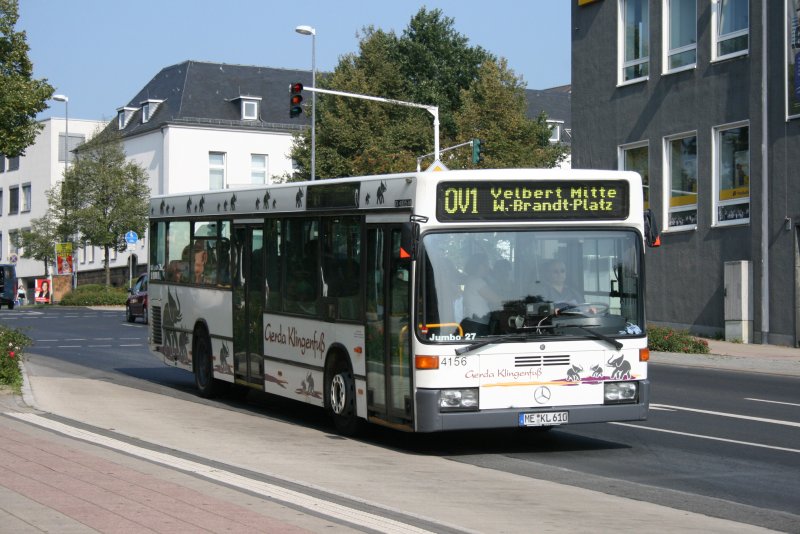 Gerda Klingenfuss Jumbo 27 (4156) ME KL 610 auf der Linie OV 1 in Velbert an der Haltestelle Velber Postamt.