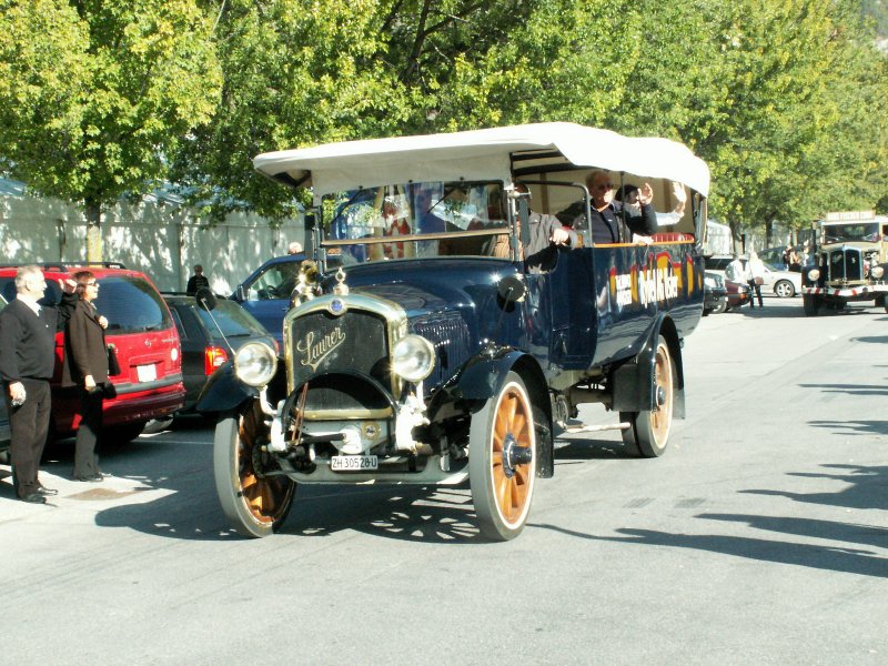 Oldtimertreffen,Saurer Cabrio-Bus,noch mit Holzfelgen und Vollgummireifen.Chur 12.09.09