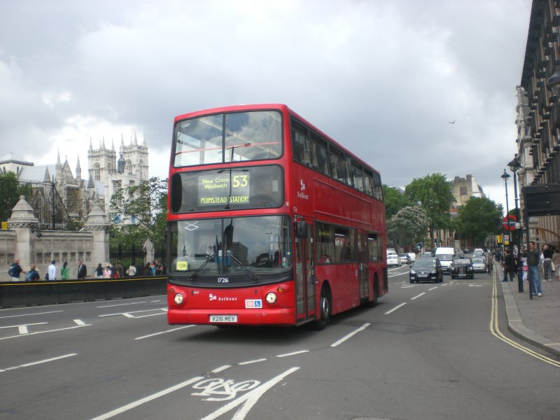 Ein Arriva-Doppeldecker auf der Linie 53 nach Plumstead Stadtion in der Parlament Bridge Street.