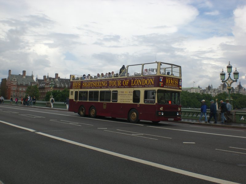 Ein Sightseeing-Tour-Bus auf der Westminster Bridge.
