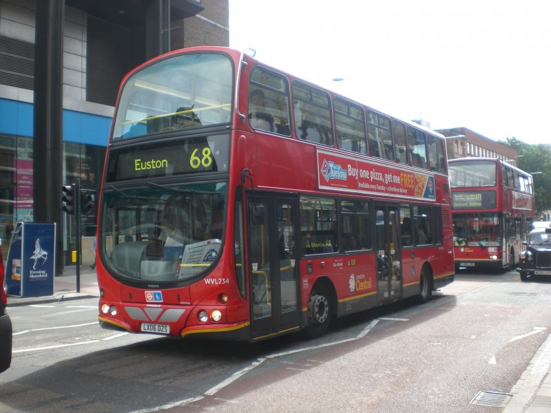 Ein Volvo-Doppeldecker auf der Linie 68 nach Euston nahe der Waterloo Station.