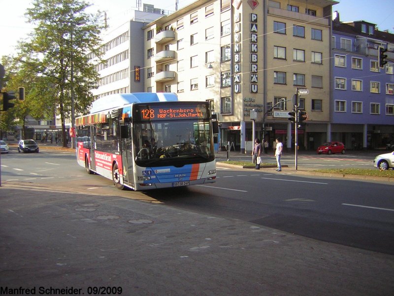 Auf diesem Foto ist einer der Erdgas-Busse zu sehen. Das Foto wurde in Saarbrücken am Römerkastell aufgenommen. Die Aufnahme des Fotos war der 21.09.2009.