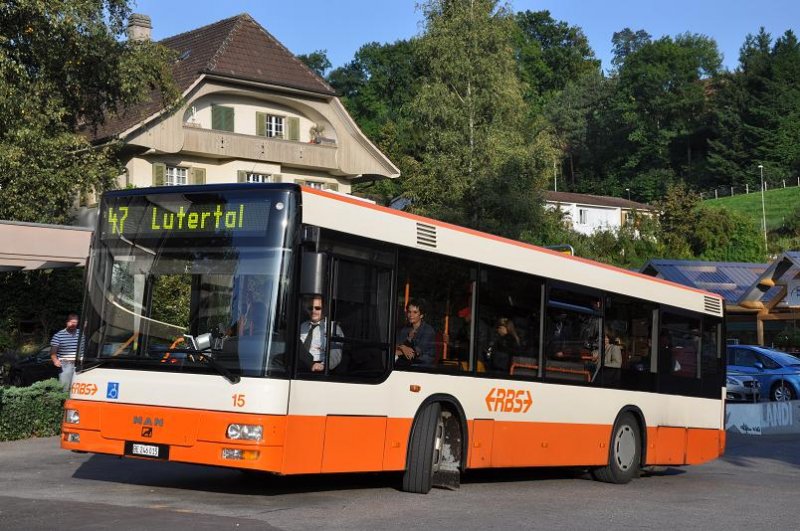 RBS, Worblaufen Nr. 15/BE 246'015 MAN am 18. September 2009 beim Bahnhof Bolligen.