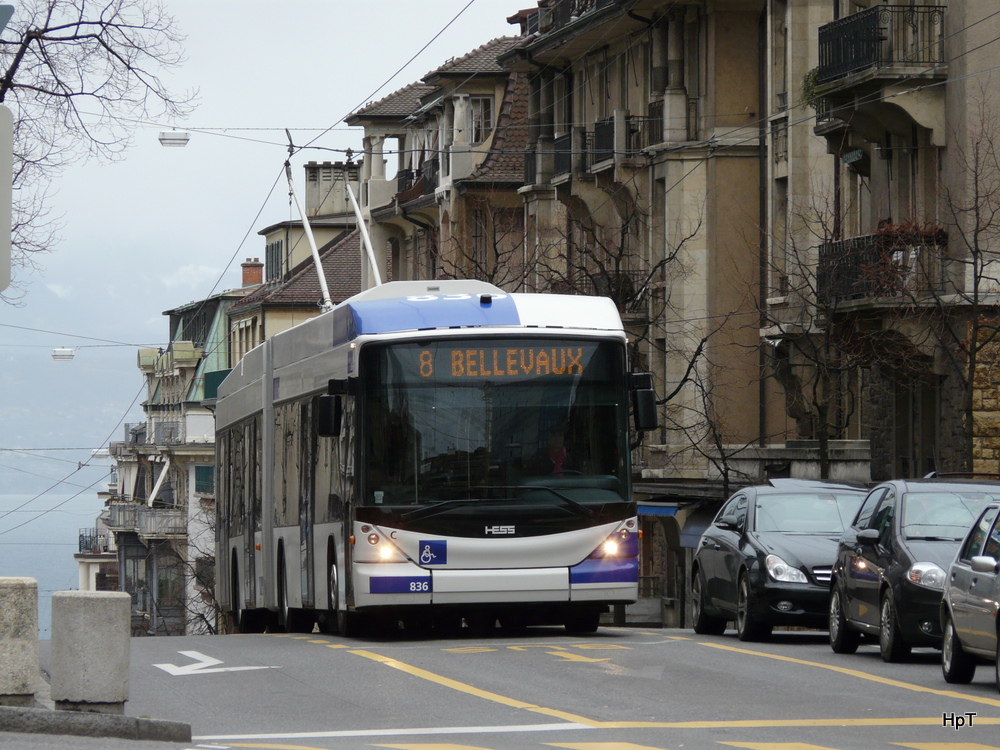 TL - Hess-Swisstrolleybus BGT-N2C Nr.836 unterwegs auf der Linie 8 in der Stadt Lausanne am 27.03.2010