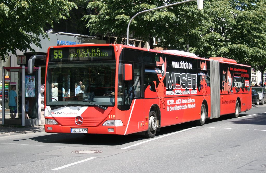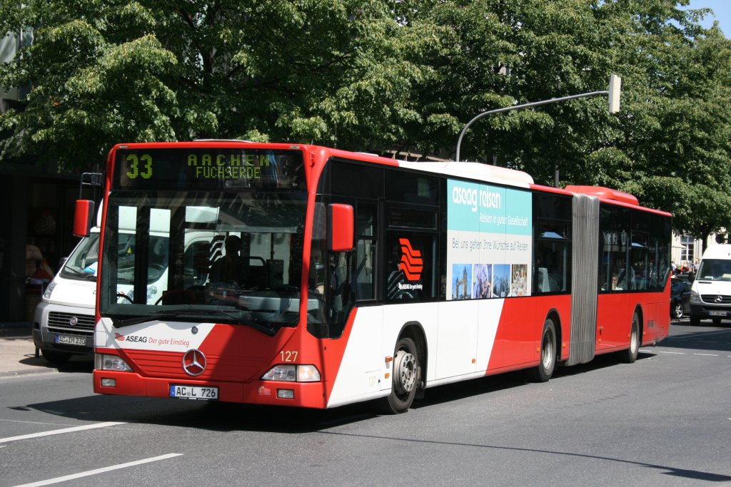 ASEAG 127 (AC L 726) macht Werbung für Aseag Reisen.