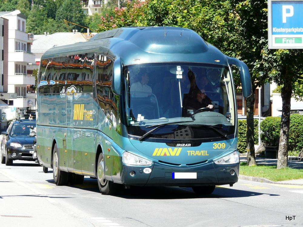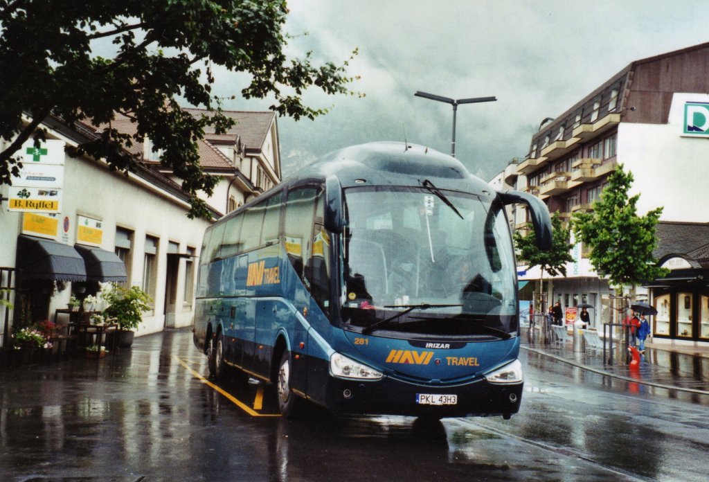 Aus Polen: Havi, Kolo Nr. 281/PKL 43H3 Scania/Irizar am 13. Juni 2010 Interlaken, Westbahnhof