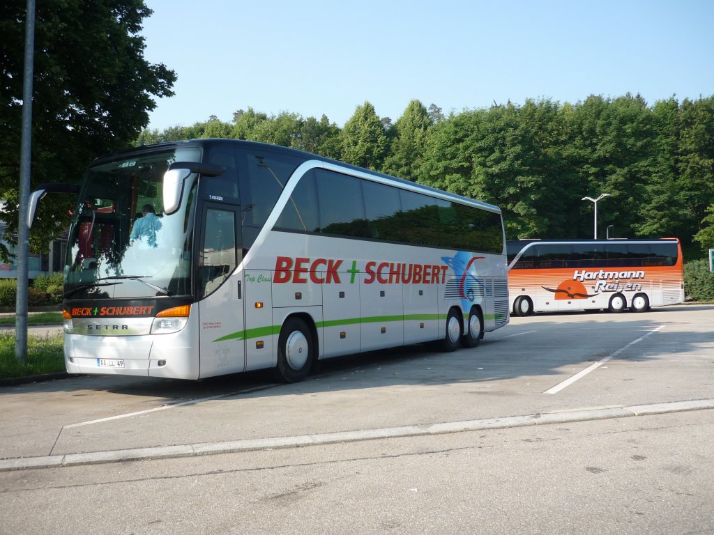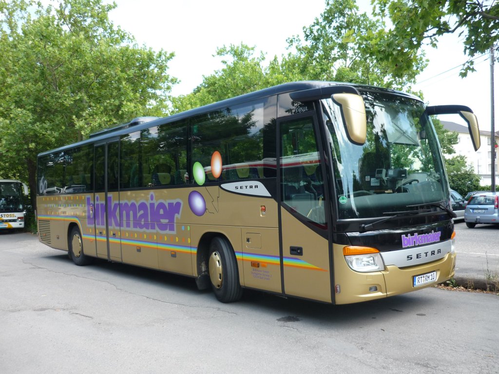Setra S 415 UL der Fa. Birkmaier macht Pause, auf dem Parkplatz vor dem Bahnhof in Reutlingen am 19.07.2010.