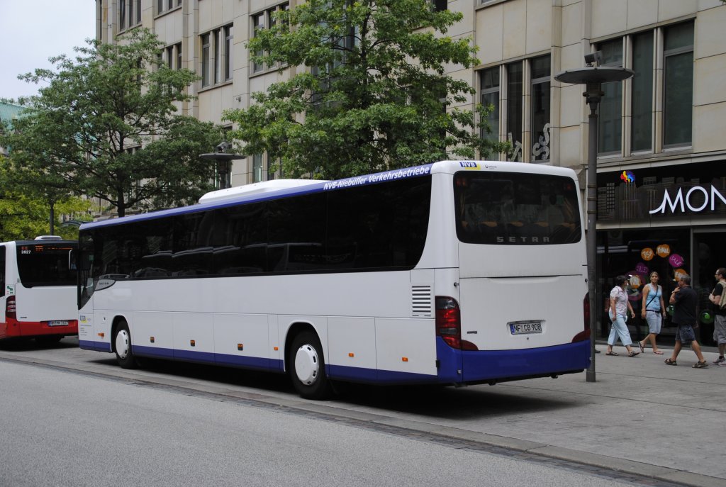 Nachschuss auf einen Setra Bus, am Rathausmarkt/Hamburg am 01.08.2010