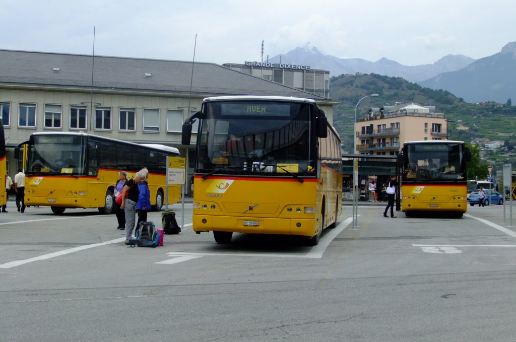 Mit der Lieferung der dritten Tranche Irisbus Crossway sind die Tage der Volvo B10B bei der Regie gezählt. 5 Wagen sind allerdings noch bei PU vorhanden, wobei gleich drei davon am 20.8.2010 in Sion nebeneinander standen: PU Buchard VS 346'746 (1999), PU Evéquoz VS 57'490 (1999, ex Regie) und PU Lathion VS 211'611 (2000).