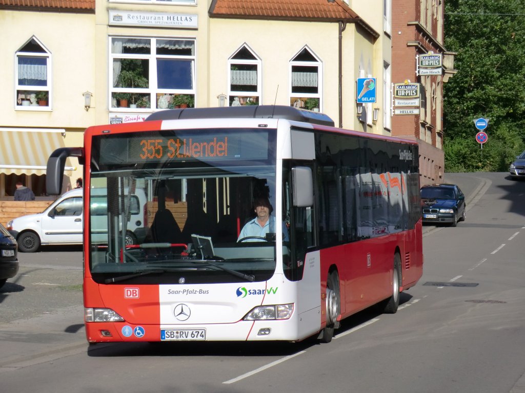 SB-RV-674 ist am 19.8.10 auf der Linie 355 von Ottweiler nach St.Wendel in der Nähe des Ottweiler Bahnhofs unterwegs.