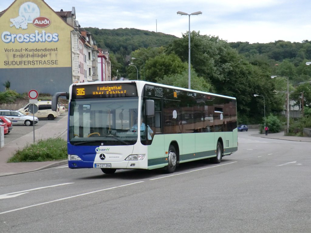 Der derzeit neuste Bus der NVG, Wagen 284 bedient am Abend des 26.8.10 die Linie 305 nach Ludwigsthal. (Neunkirchen (Saar) Hbf.)