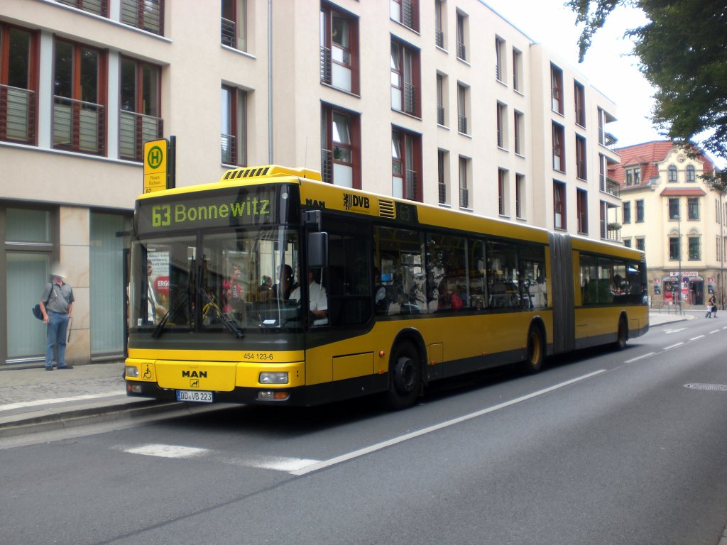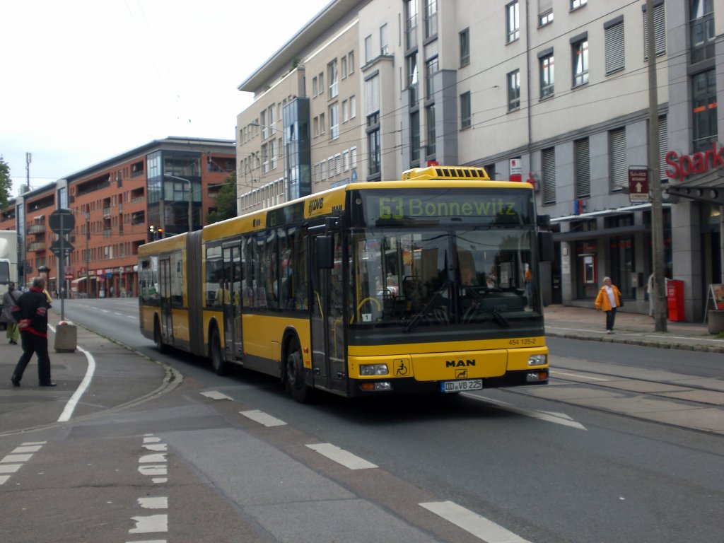 MAN Niederflurbus 2. Generation auf der Linie 63 nach Bonnewitz an der Haltestelle Löbtau.