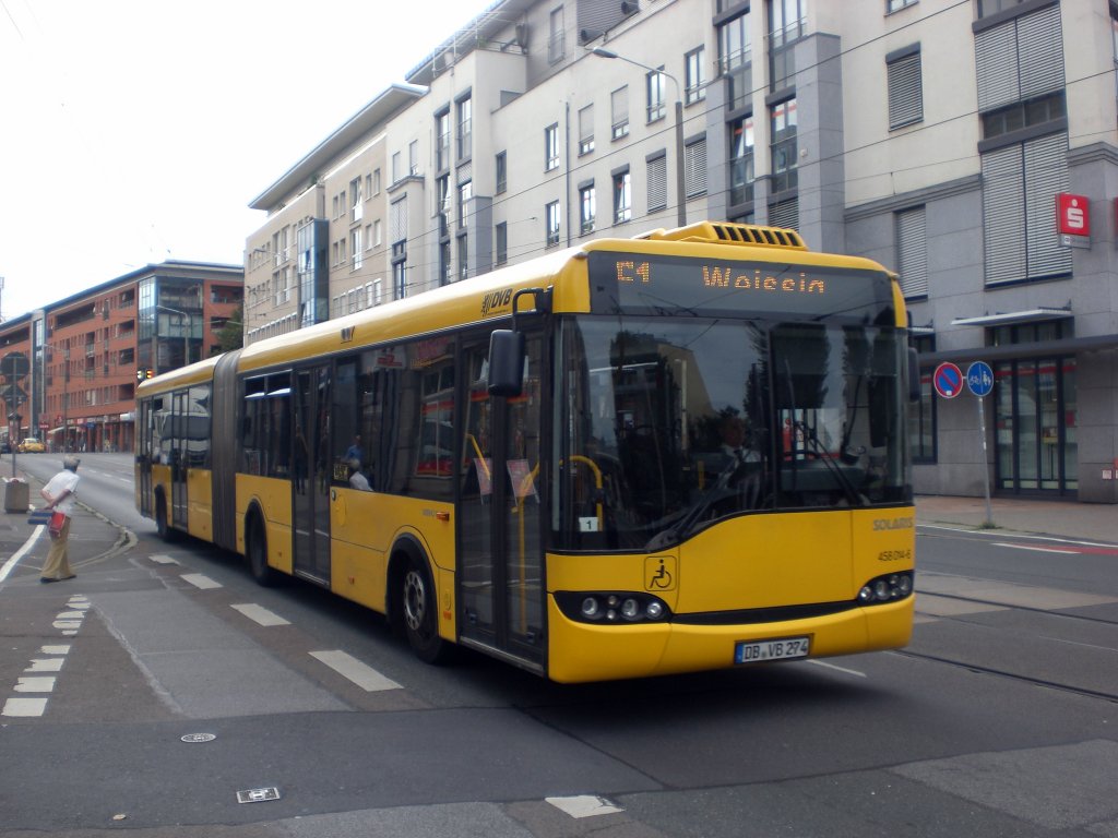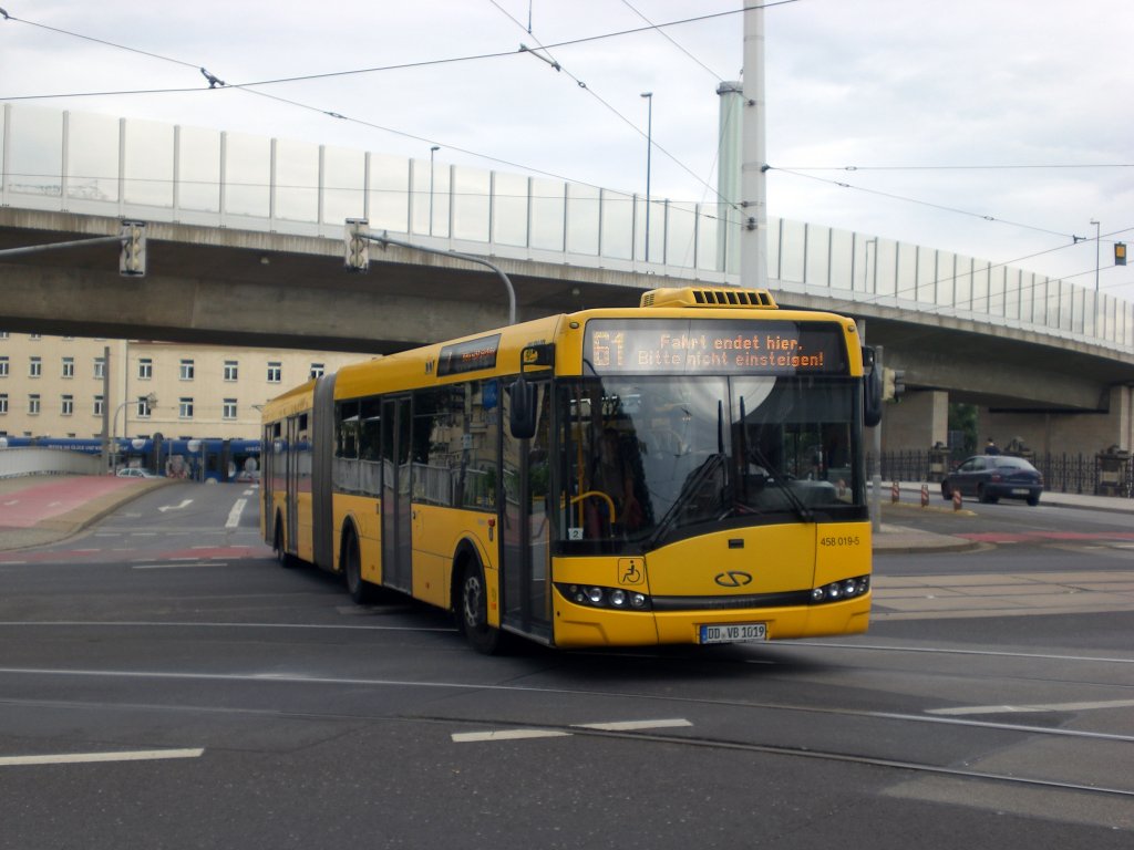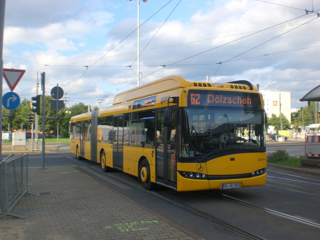 Solaris Hybrid auf der Linie 62 nach Dölzschen an der Haltestelle Pirnaischer Platz.