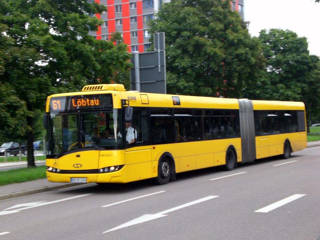 Solaris Urbino auf der Linie E61 nach Tiergartenstraße an der Haltestelle Zellescher Weg.