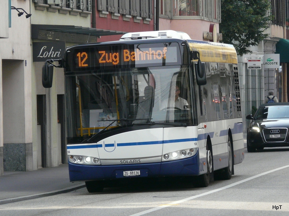 ZVB Zugerland - Solaris Urbino 8.6 Nr.136 ZG 88136 unterwegs in der Stadt Zug am 20.08.2010