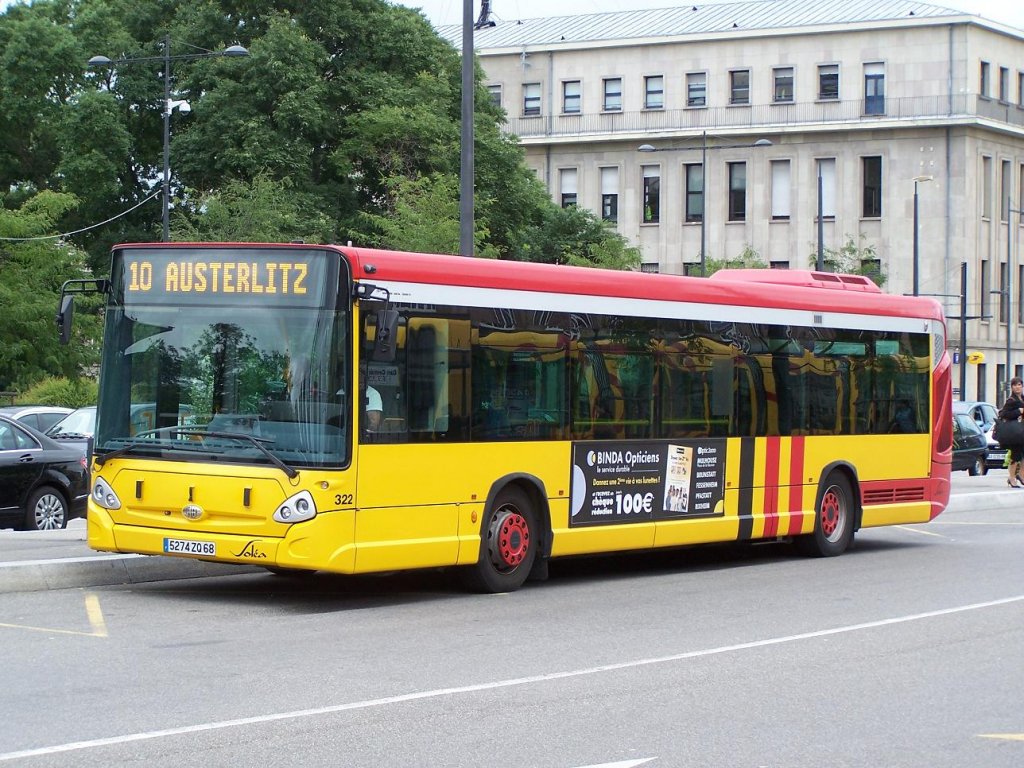 Der Heuliez GX 327 Nr 322 am mulhouser Bahnhof am 30/08/10.