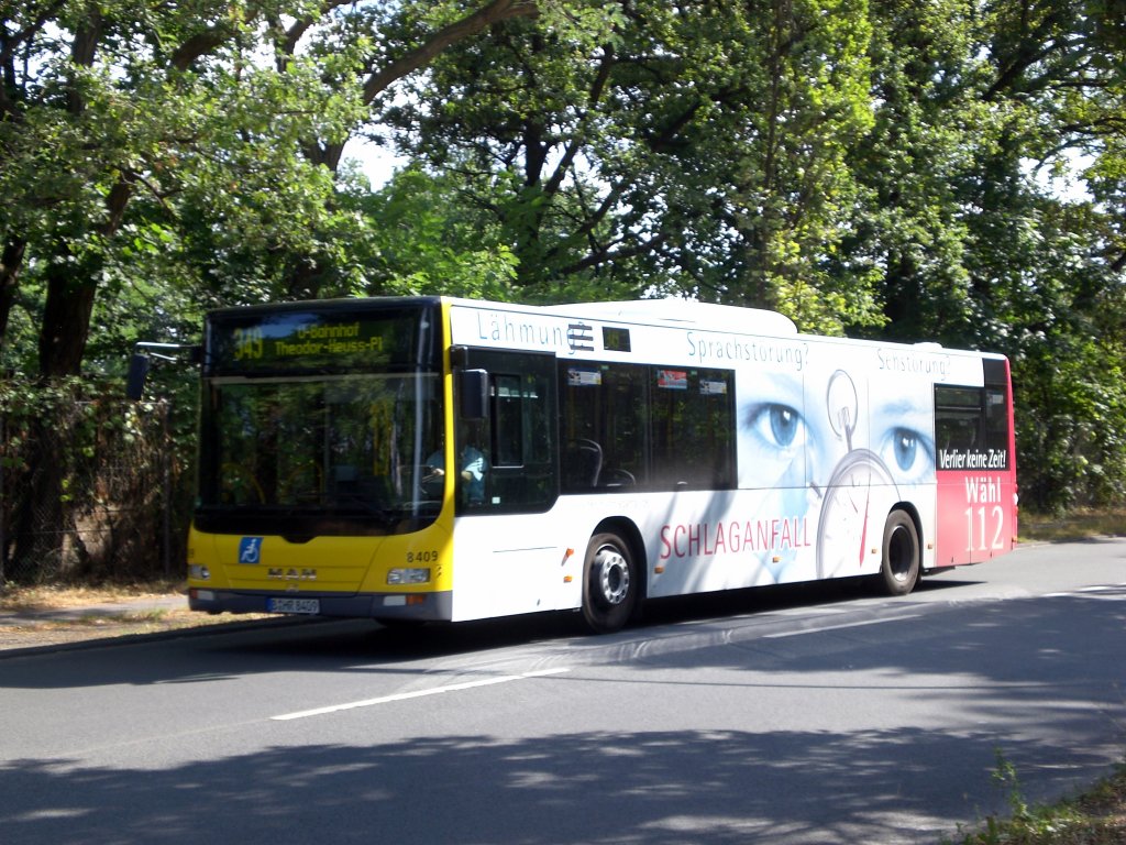 MAN Niederflurbus 3. Generation (Lions City) auf der Linie 349 nach U-Bahnhof Theodor-Heuss-Platz am S-Bahnhof Messe Süd.