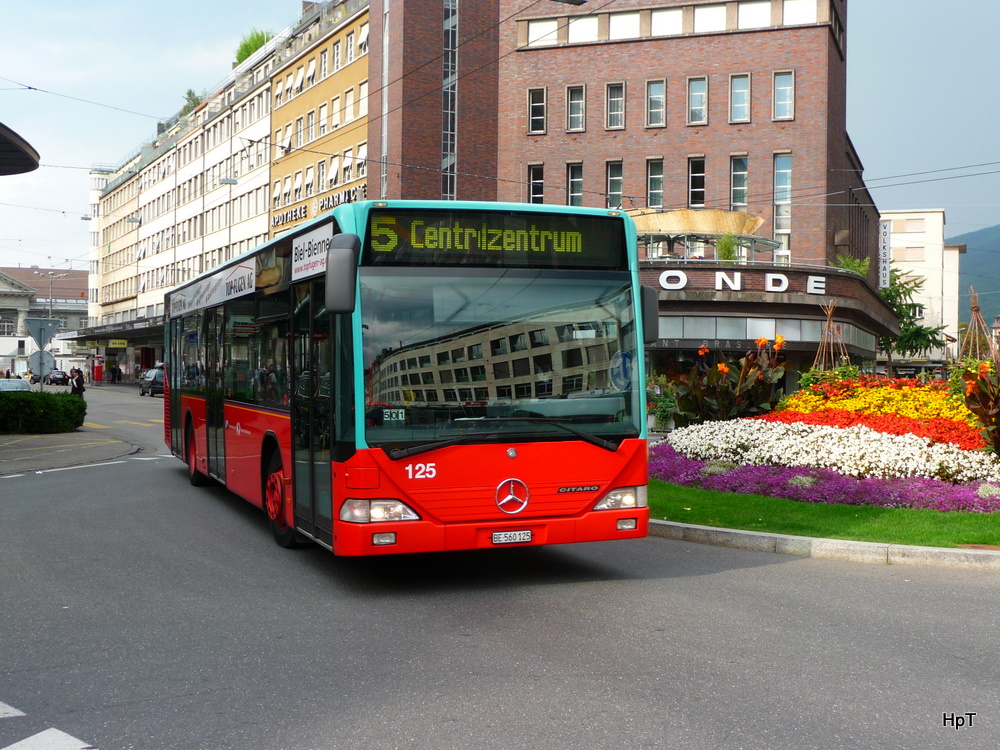 VB Biel - Mercedes Citaro Nr.125 BE 560125 unterwegs auf der Linie 5 in der Stadt Biel am 14.08.2010