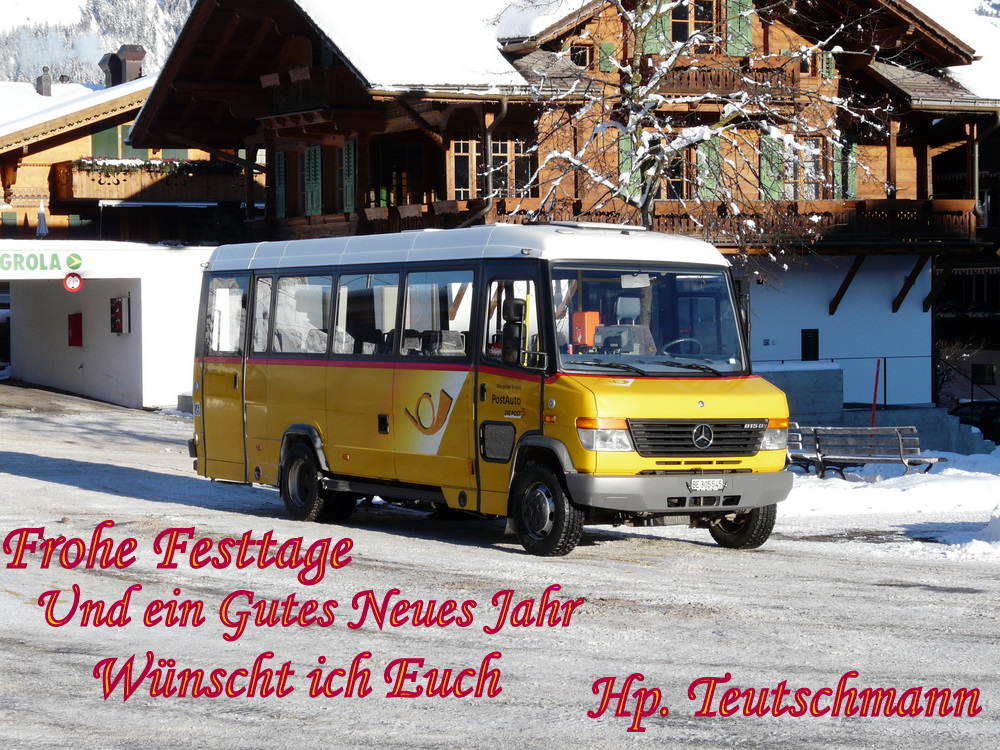 Postauto - Kleinbus Mercedes 815 D BE 305545 in Gstaad am 03.12.2010