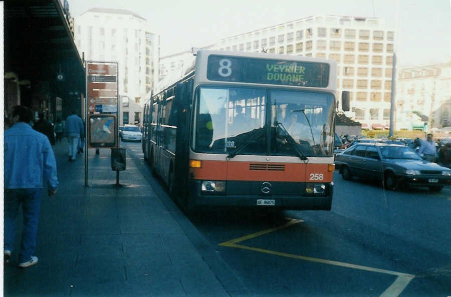 Aus dem Archiv: TPG Genève Nr. 258/GE 96'075 Mercedes O 405G am 16. März 1997 Genève, Bahnhof