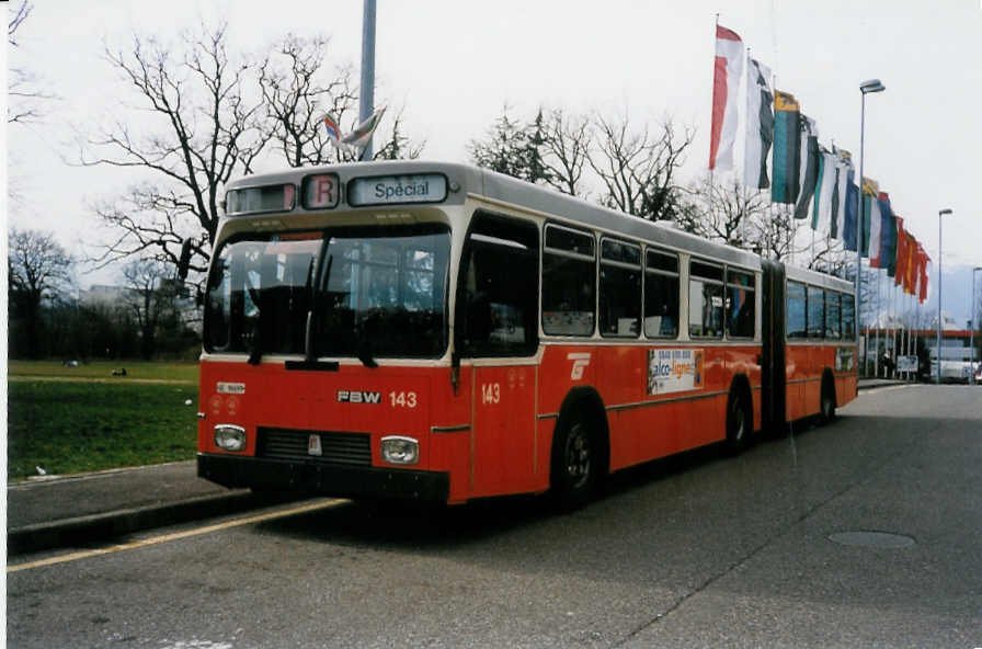 Aus dem Archiv: TPG Genève Nr. 143/GE 96'699 FBW/R&J am 21. März 1999 Genève, Palexpo