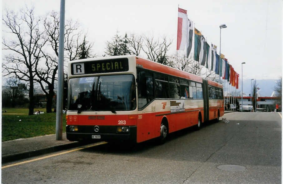 Aus dem Archiv: TPG Genève Nr. 283/GE 96'339 Mercedes O 405G am 21. März 1999 Genève, Palexpo